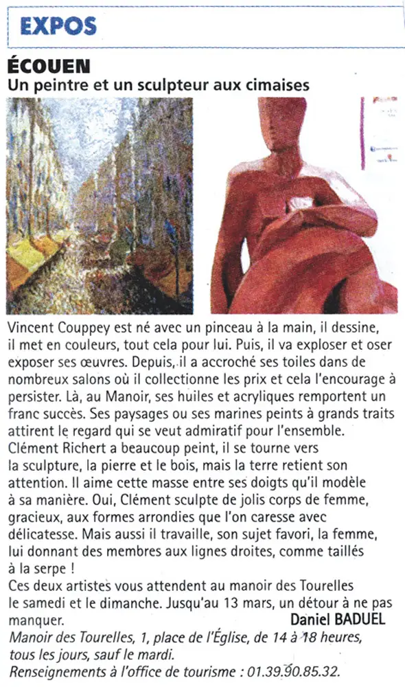 Exposition du peintre Vincent Couppey et du sculpteur Clément Richert